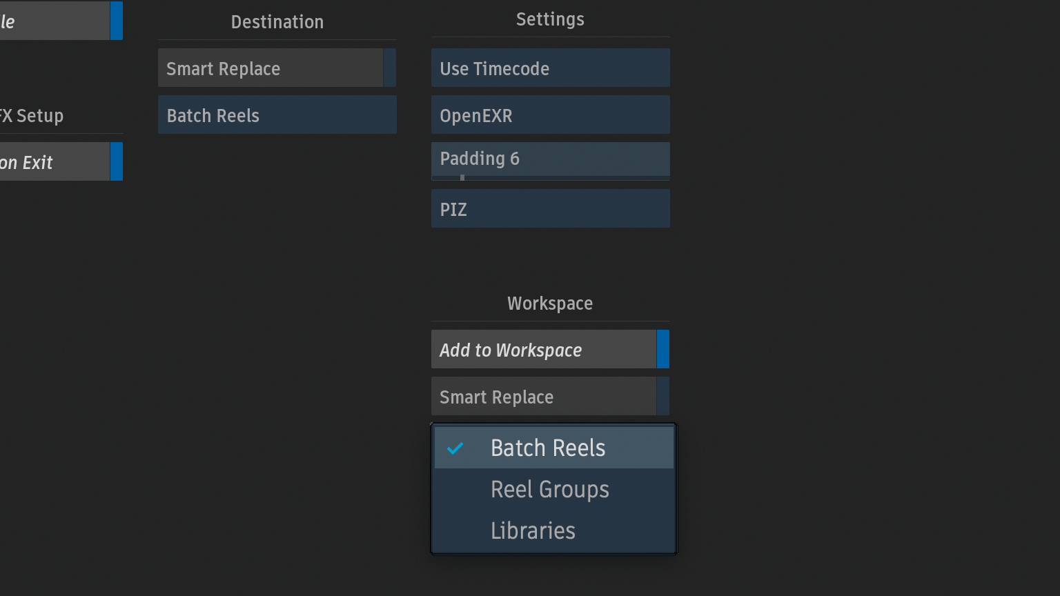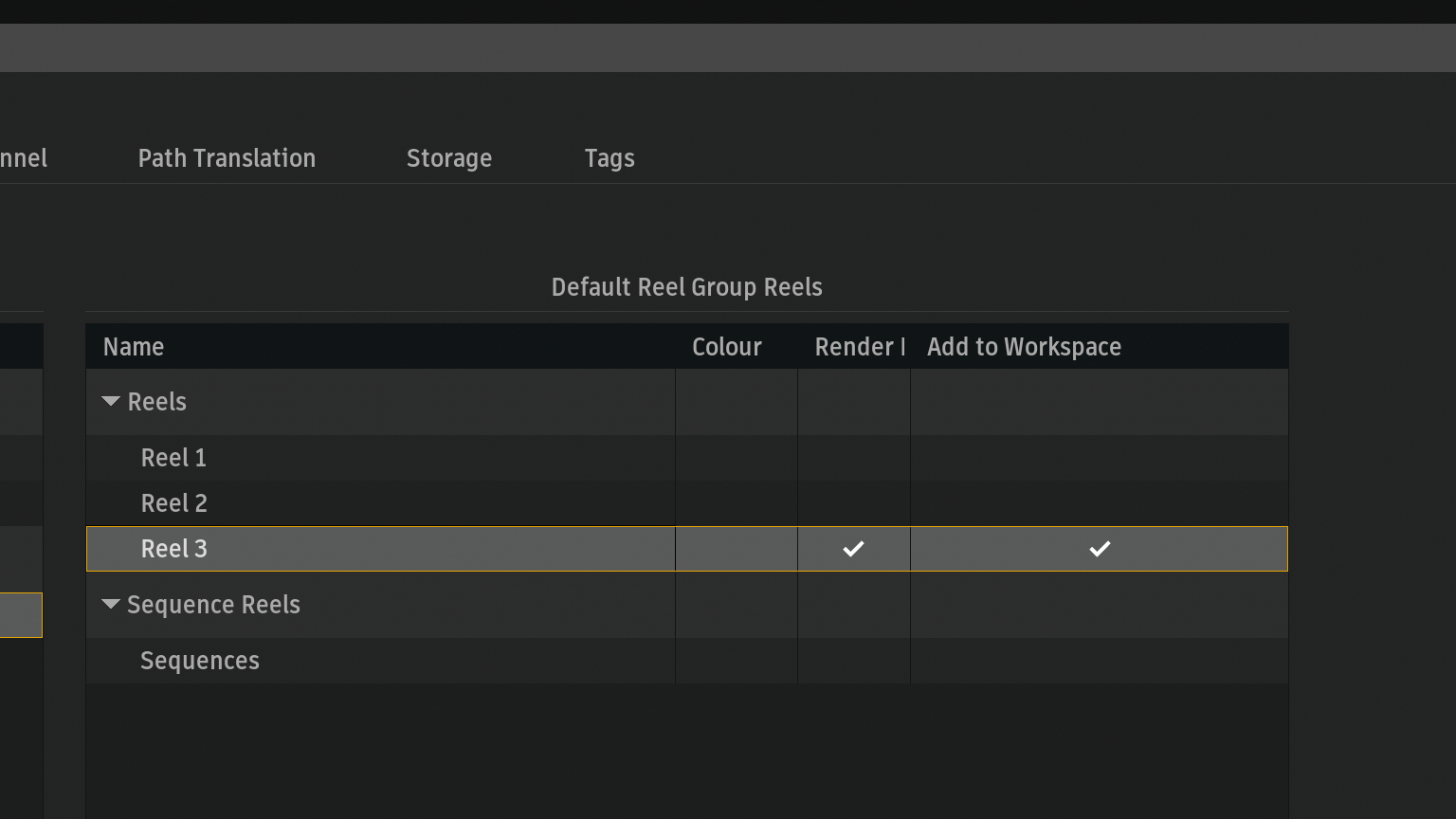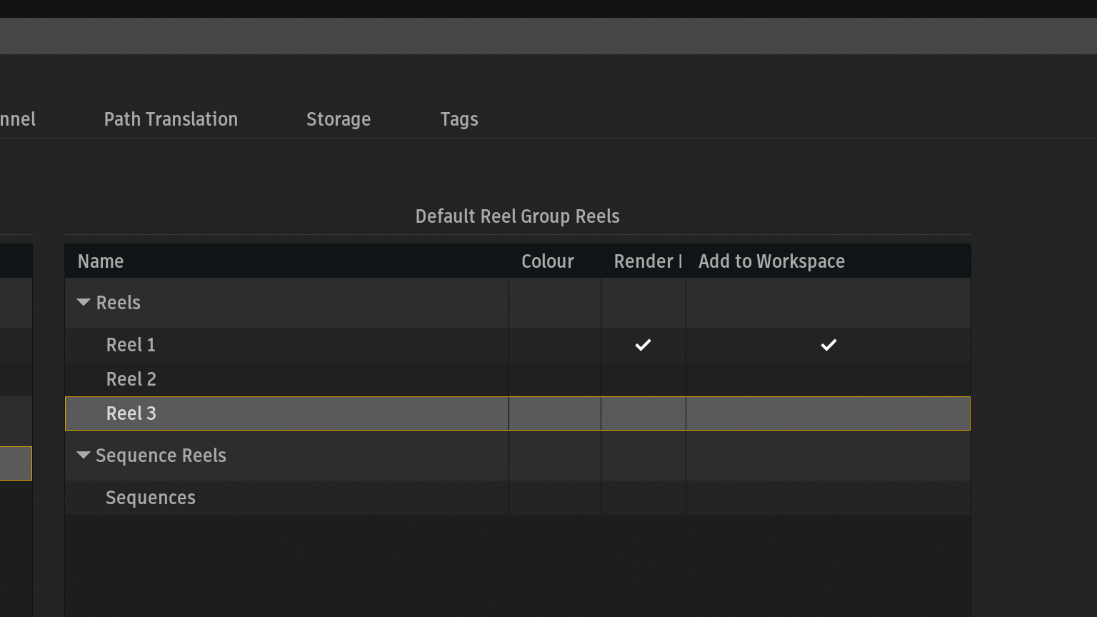 RenderノードのRenders Destinationと、WriteFileノードのAdd to Workspaceを変更する場合、クリックしてリールを指定します。