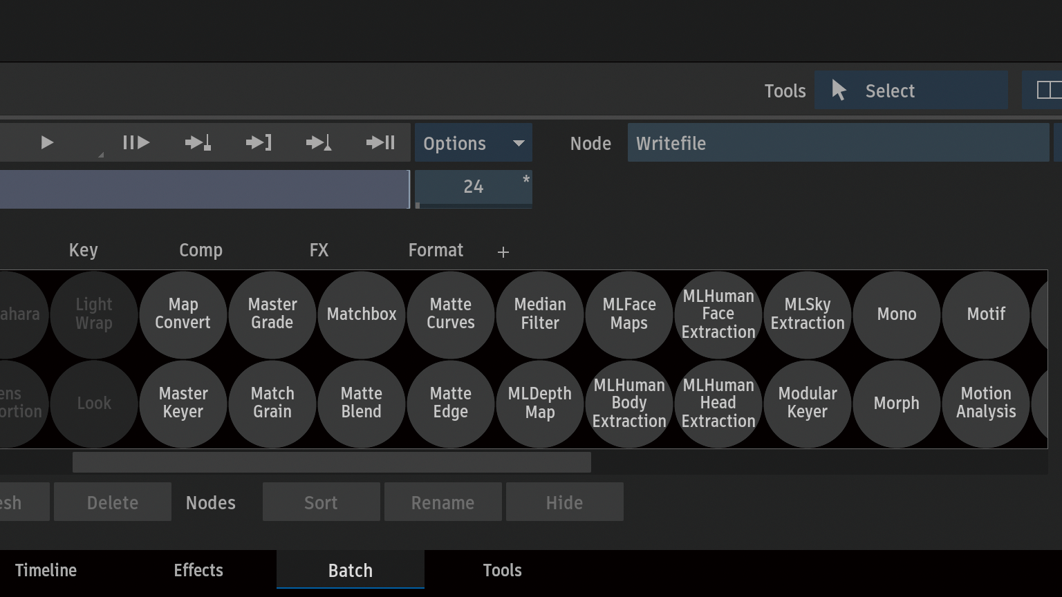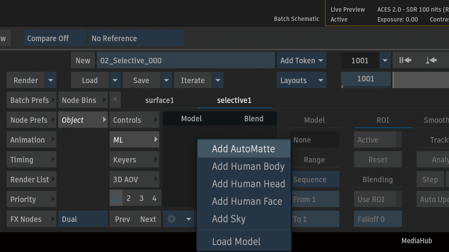 A2BeautyやMasterGradeなど、Flameに含まれる一部のMatchboxシェーダーと、機械学習モデルを提供する複数のノードをAll Nodeから利用できるようになりました。