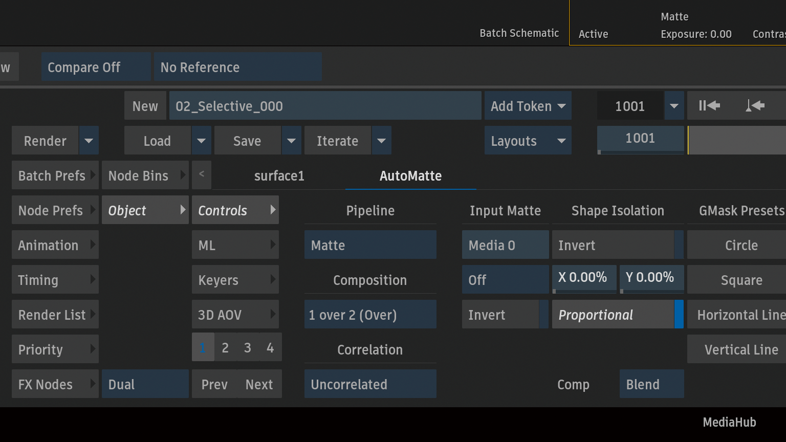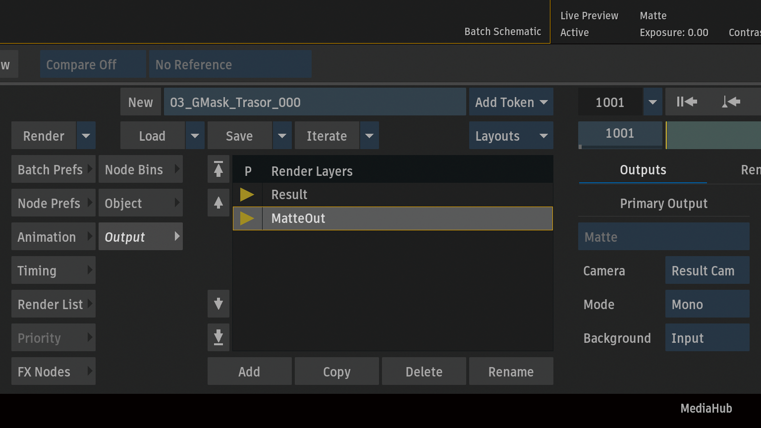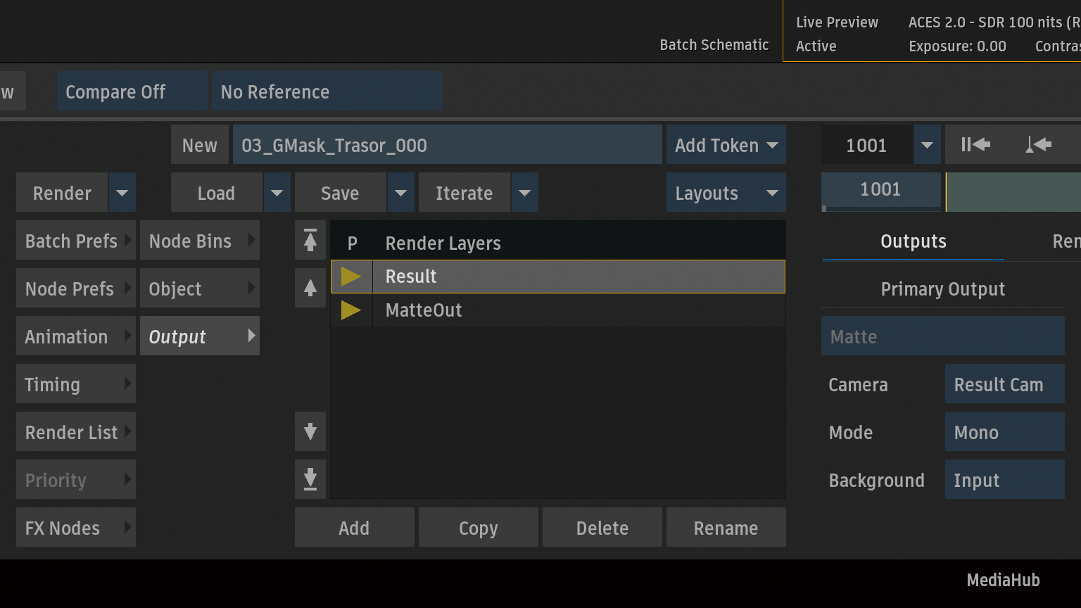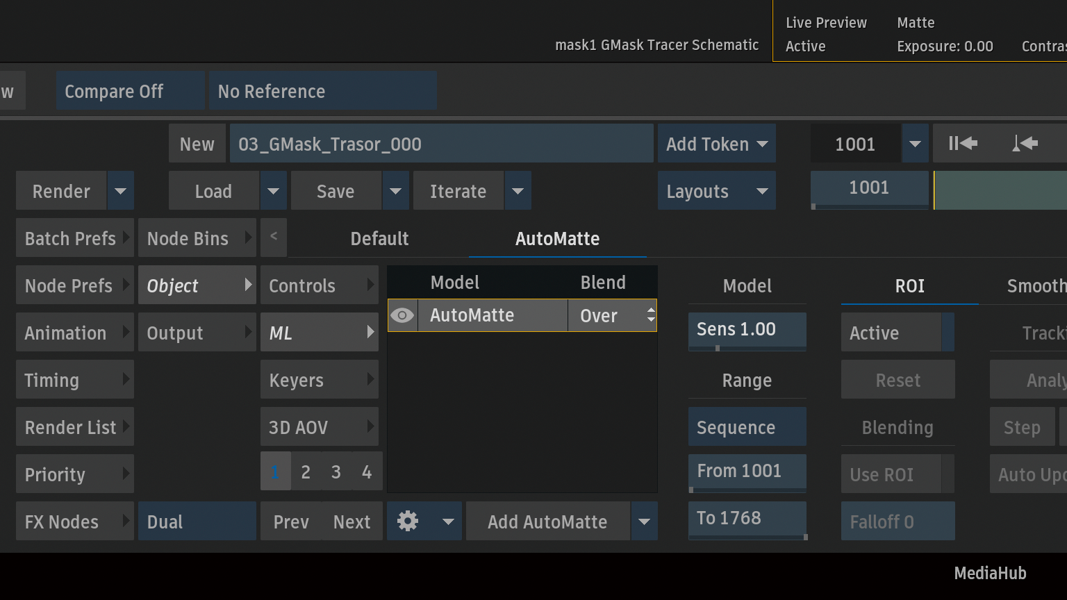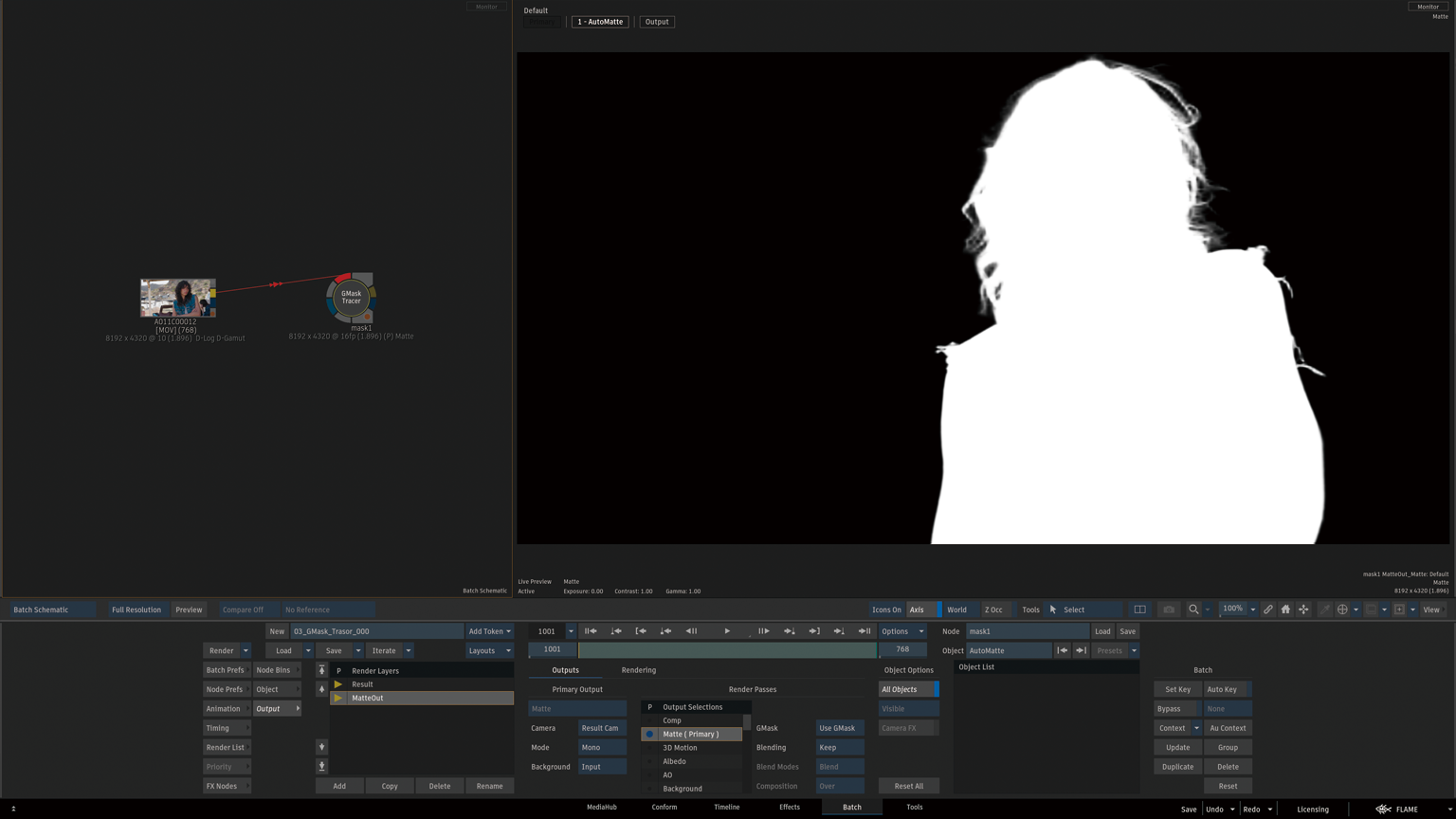 GMask Tracerノードは、デフォルトでResultとOutMatte出力を持ち、これら2つの出力間を頻繁に切り替える際の Actionノードとの互換性(ショートカットキー F4)が高まりました。