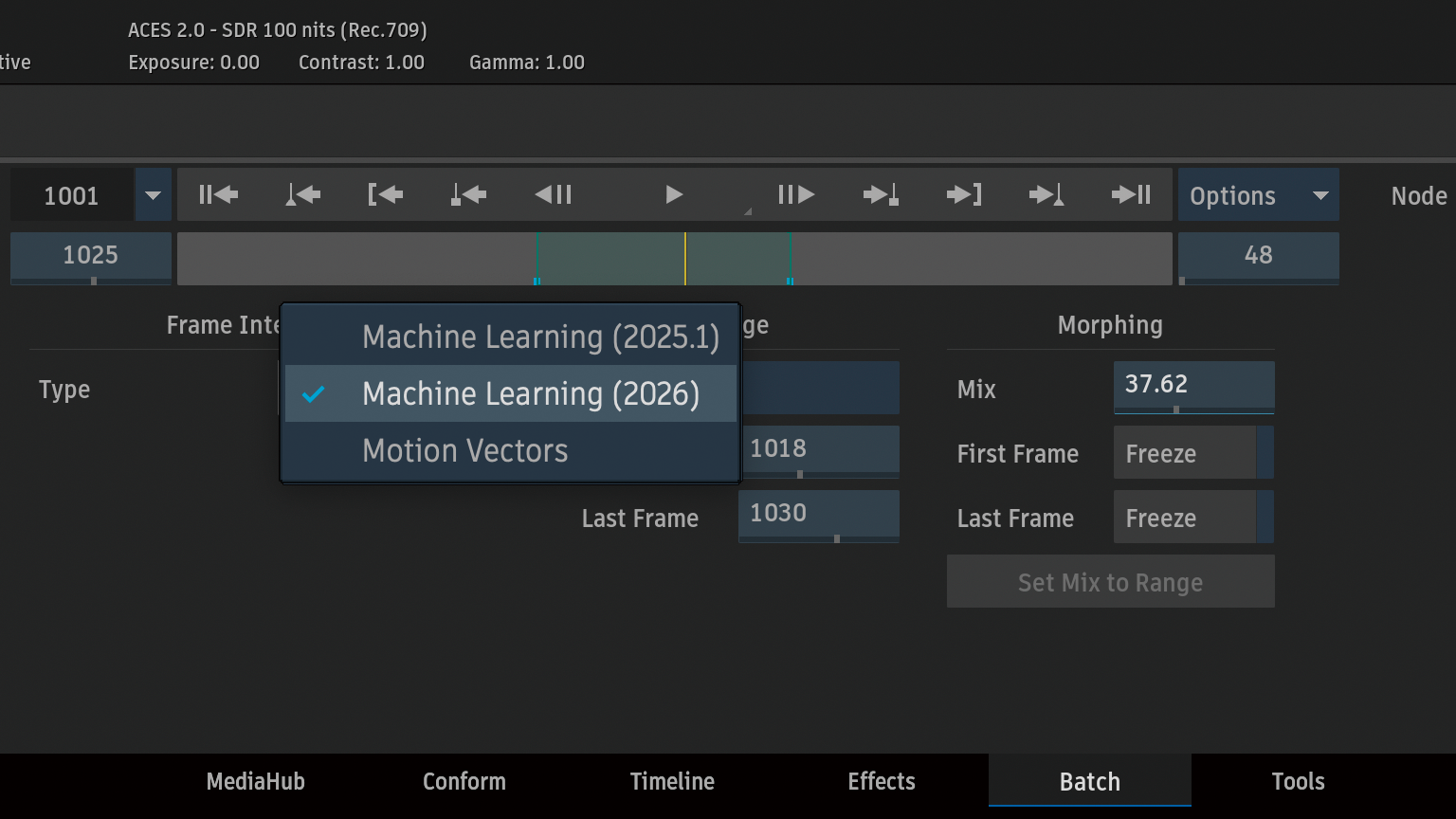 macOS Sequoia 15.4以降では、Apple Siliconを搭載したワークステーションで実行する場合、フレーム補間機械学習モデルをGPUとニューラルエンジン(Apple Siliconに搭載されている機械学習専用アクセラレータ)で実行して、より優れたパフォーマンスを提供することができます。