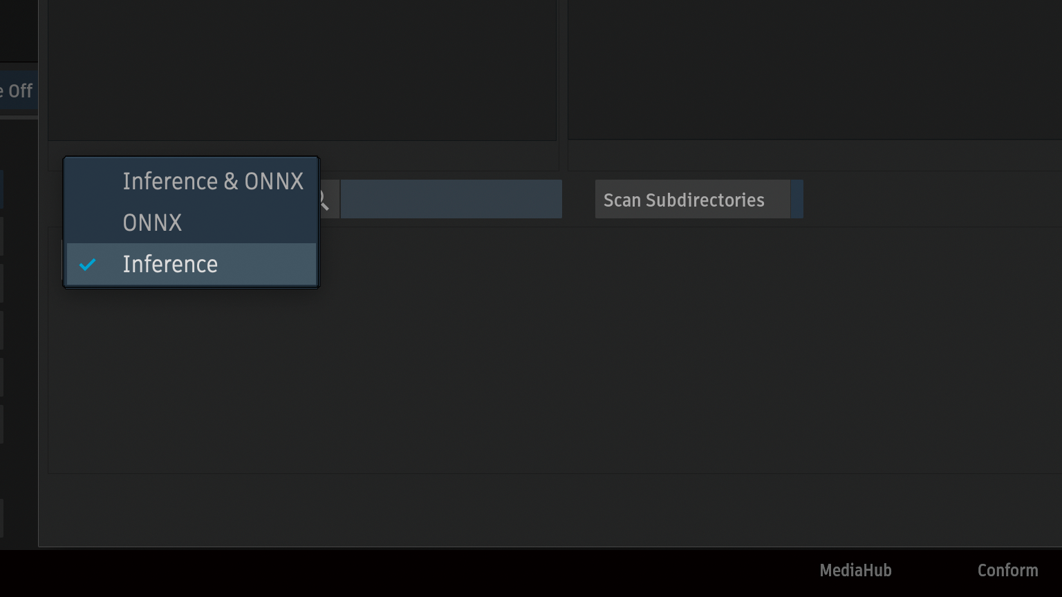 Change Modelから拡張子をONNXからInferenceに切り替えます。